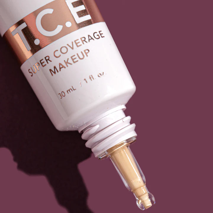 T.C.E. Super Coverage Makeup is the solution for skin troubles. One drop provides concentrated, clean coverage with a real-skin finish while wrapping your skin in a cocoon of repairing, soothing ingredients including Vitamin C, Magnesium, Green Tea Extract & Aloe Vera Extract. The special blend of silk pigments is weightless on the skin and it will never crack, crease or settle into texture.